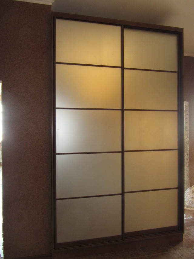 Виробництво шаф купе під замовлення в Києві та Київській області. Швидко якісно недорого з екологічно чистих матеріалів. Професійний підхід до вимірів виробництва та встановлення виробів. Шафи купе виготовляються на високоточному обладнанні та встановлюються тільки професійними інструментами. У виробництві шаф купе використовуються матеріали різних виробників ДСП EGGER, Kronospan, CLEAF. Ми використовуємо розсувні та двостулкові системи тільки перевірених виробників. Фасади дзеркальні срібло бронза графіт, фасади дзеркало піскоструминне, фасади матові сатинові скла, фасади пантонний друк, фасади фотодрук, фасади лакобель, фасади з фарбуванням у різні кольори та багато іншого. Шафа купе на замовлення можна замовити в будь-якому з наших магазинів у місті Києві та Броварах або прорахувати телефоном. Заміри шаф купе безплатно під час оформлення замовлення. Ціна шафи купе мінімальна в Києві.